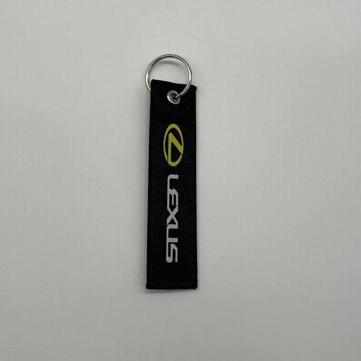ميدالية قماش وخامة قماش متينة وغير قابلة للقطع، تأتي بشعار لشركة لكزس وبحلقة معدنية لتعليق المفاتيح او المستلزمات الاخرى.